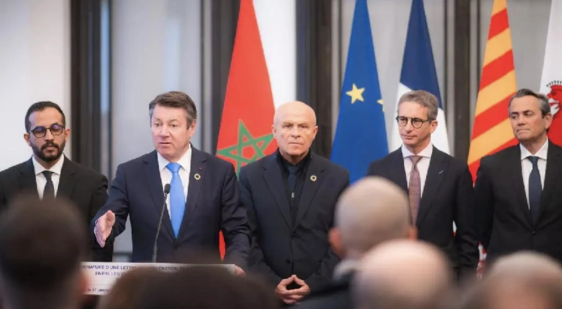 وقّع رئيس مجلس مدينة الداخلة الراغب حرمة الله وعمدة مدينة نيس كريستيان إستروزي رسالة نوايا تمهّد لتوأمة بين المدينتين، بما يعبّر عن إرادة مشتركة لتوسيع الشراكات وتعميق التعاون. جرت مراسم التوقيع بحضور القنصل العام للمغرب في مرسيليا محمد الحمولي، في خطوة تفتح المجال أمام مشاريع عملية في السياحة والطاقة الخضراء وتبادل الخبرات.
