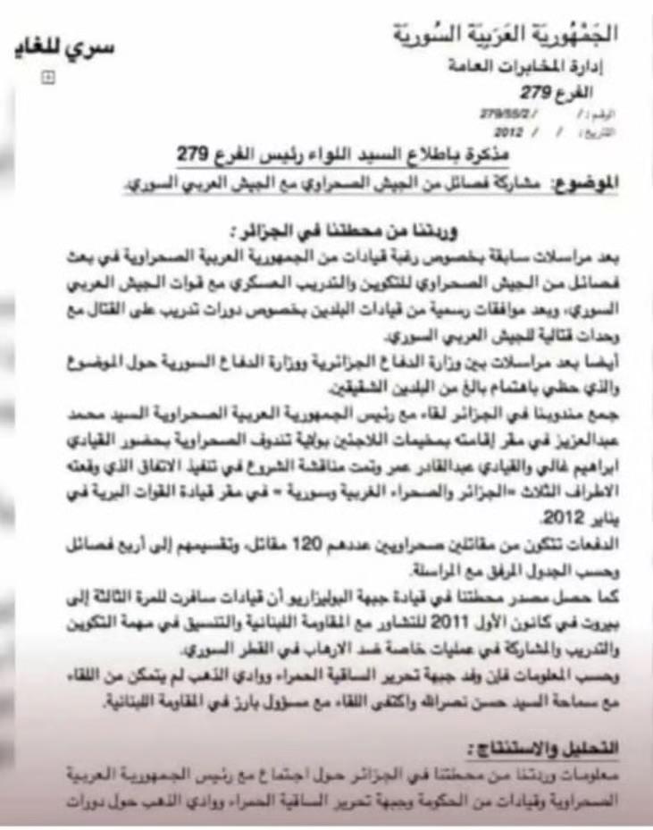 في شمال غرب إفريقيا، تذكر وثائق أن اسم جبهة البوليساريو ورد في تقاطعات مع شبكات حزب الله وسوريا خلال العقد الماضي. وتشير مذكرة منسوبة إلى أجهزة سورية إلى ترتيبات تدريبية شملت مجموعات من مقاتلي البوليساريو في لبنان، وإلى زيارات متكررة لبيروت من أجل التنسيق. وتضيف شهادات أن تغيّرات السلطة في دمشق أواخر 2024 وما تلاها ترافق معها كلام عن توقيفات وتفاوض حول عناصر مرتبطين بالجبهة، في صورة تعكس براغماتية إيرانية في إدارة التحالفات على قاعدة أولوية صراع النفوذ الإقليمي مع المغرب وحلفائه.
